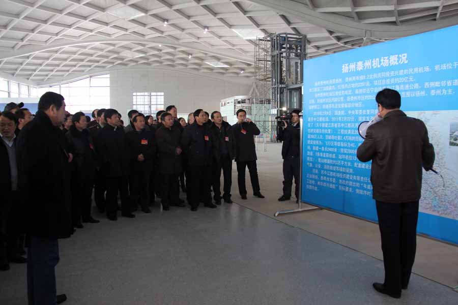 市人大代表、政協(xié)委員們在聽取了揚州泰州機場相關負責人關于工程規(guī)模、進度、投資和工程質(zhì)量等相關情況的匯報后,實地察看了機場航站樓建設情況,視察人員充分肯定了市政府及有關單位在機場工程建設方面所做的工作和取得的成績,為揚州近幾年經(jīng)濟社會發(fā)展所取得的成就而歡欣鼓舞。