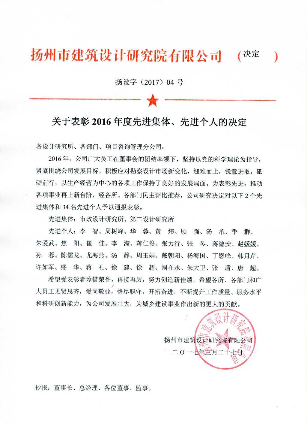 關(guān)于表彰2016年度先進(jìn)集體、先進(jìn)個(gè)人的決定